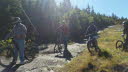 Pretty strait forward, minimal pedalling, but trying to avoid those huge loose rocks and roots and divots along the way. We made our way down the easy paths, with no injuries. We stopped a few times for photos and videos but all made it back to the lodge in one piece despite Island Jims attempt to cause major damage to us by selecting one final difficult past at the last moment. We still survived.